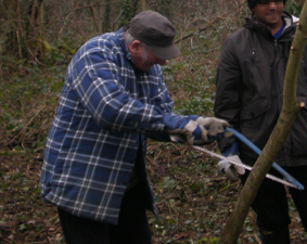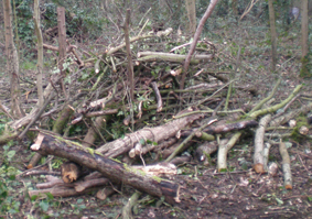 Despite my very bad start to the morning (I knocked over and managed to spill about half of the hot water supply for tea), we cracked on with the task at hand. Last month, we cleared some of the lower vegetation and built a dead hedge (a handy hide for small creatures, pictured right) this week we carried on clearing the lower vegetation.