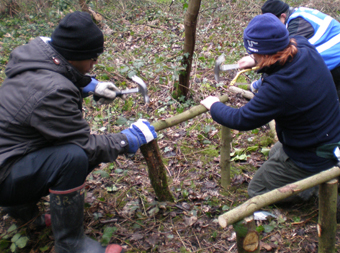 We continued with our chopping, hacking and clearing until one of the wonderful volunteers suggested that we take a break and have tea. However, there was a problem (no, not that we didn’t have much water!) we had nothing to sit on. With that, Judith scurried of to the van in search of some tools and nails; I do often think that Thames21’s van resembles a Mary Poppins bag, you never know what or how much is in it!