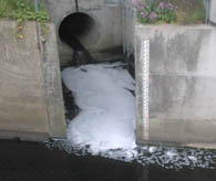 On the 27th June, I witnessed another pollution incident in the same area. Water was pouring out of a pipe that is only meant to flow during periods of heavy rainfall. Foam spread from the pipe and into the channel that goes into the Pymmes Brook. Again, it has not been possible to locate the source of the pollution.
