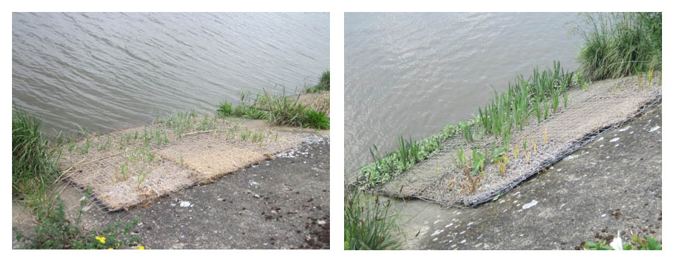 Our green wall modules certainly are flourishing in all this nice weather we have been having lately. The modules are installed on the east bank of the River Lea, near to Cody Dock. The aquatic sedges that are growing not only green the Lea, they act as a filter for pollutants in the River and also provide habitat for riparian species.