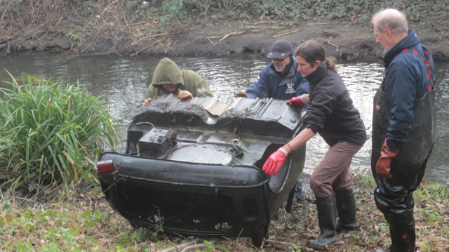 It was wonderful to be joined by old faces (returning volunteers) when they and our regular team quite spectacularly removed the car parts from the river at Crayford last Friday, a huge well done to you all (Thanks to Ron for the images, these tell the story of the day).