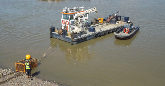 We plan and work together with the Port of London Authority (PLA) who place at the site of these foreshore clean ups cages for the collected rubbish. It was great to see the crew of PLA Vessel, Driftwood II complete the next stage of our operation. Which I hope brought a greater sense of satisfaction to the volunteers who remained and watched the removal in the spring sunshine. Keep a lookout for our many events on the Thames Foreshore during the year and check out the Thames River watch section of our website. http://www.thames21.org.uk/project/thames-river-watch/